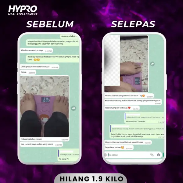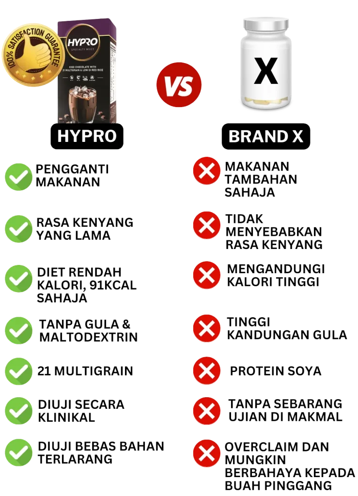 Sebab itu, kami bagi jaminan. Supaya takda siapa pun rugi dalam mencuba produk HYPRO. Cubalah produk ni sekarang. Sekiranya… selepas dah amalkan selama 3 bulan. Kalau tak suka dengan kesan. Rasa tak Sedap. Tak suka kotak. Tak suka bau. Tak suka texture. Tak suka dengan apa jua sebab. Pulangkan balik.