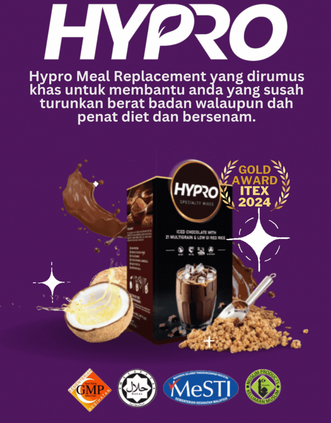 KETIGA : Anda bagi peluang untuk cuba HYPRO sekarang. Amalkan setiap hari, sampai anda dapat rasa sendiri penurunan berat badan secara sihat. Tiada lagi diet rosak sebab tak tahan lapar. Tiada tenaga. Tak bermaya. Produk selamat, berkesan, Lulus KKM dan diformulasi khas oleh Pakar Teknologi Makanan UiTM.