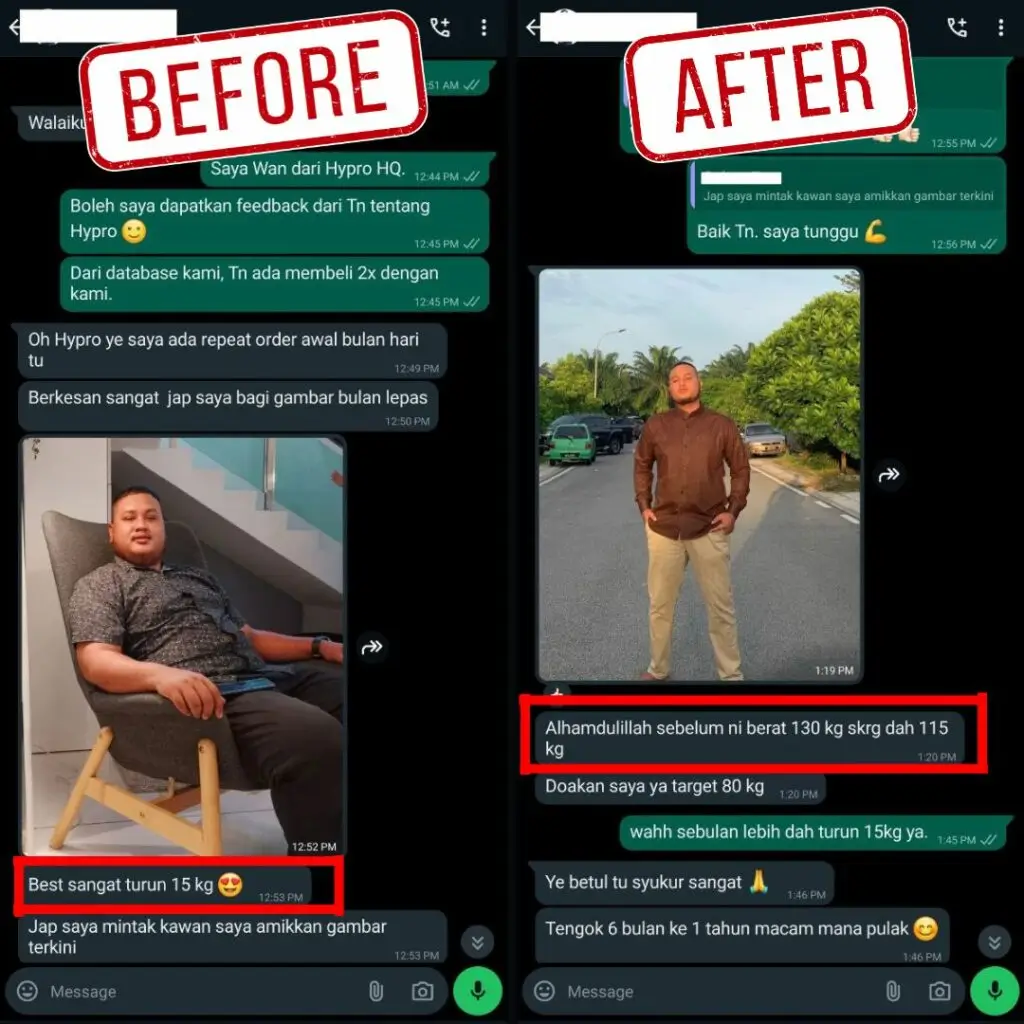Kesan boleh nampak secepat 7 hari sahaja. Amal HYPRO dengan betul dan konsisten. Berdasarkan rekod pengguna HYPRO sendiri.